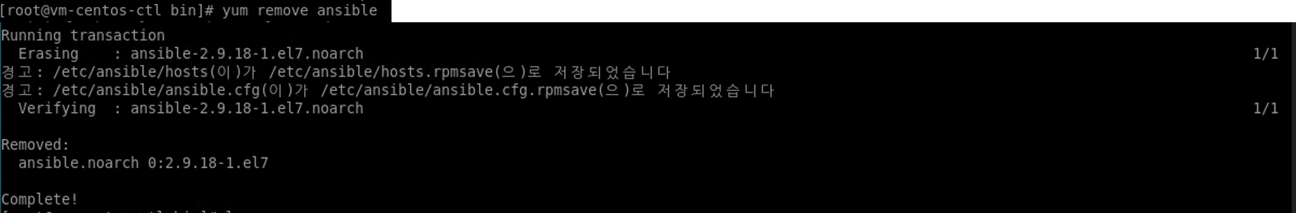 (저의 경우, 초기 ansible 설치시 yum 을 통해서 설치하여 yum 을 통해 삭제 함. )