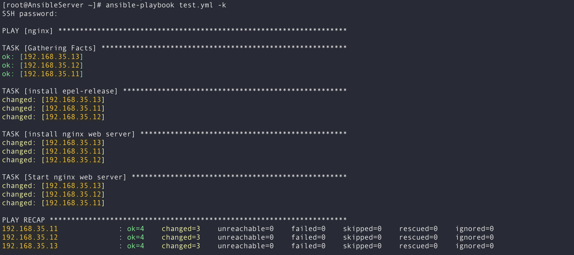 192.168.35.11 : ok=5 changed=1 unreachable=0 failed=0 skipped=0 rescued=0 ignored=0