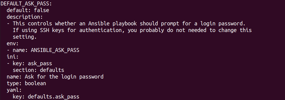 ask_pass: SSH 인증하기 위한 패스워드 요청/입력 여부(기본: false)