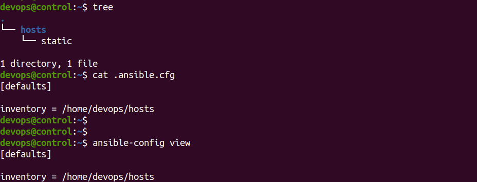 설정 파일 ANSIBLE_CONFIG 환경 변수 -> 홈 디렉토리의 ~/.ansible.cfg