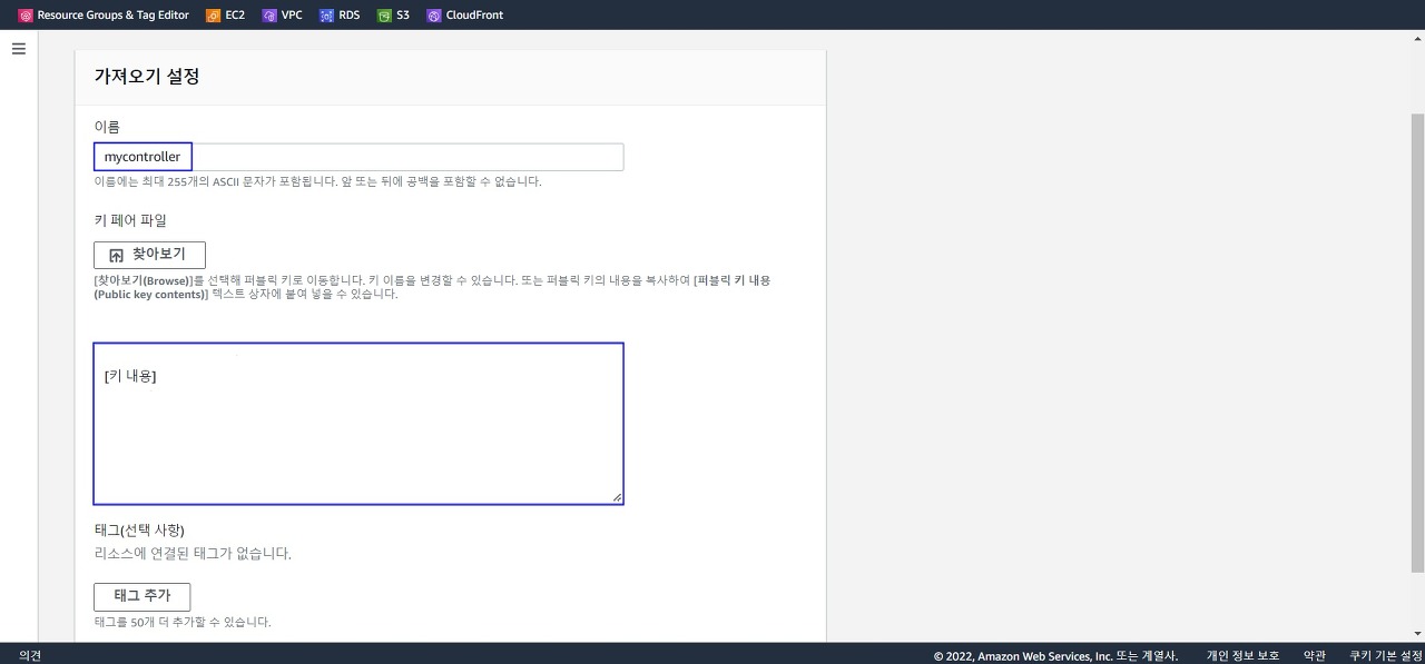 7. AWS에서 [작업] - [키 페어 가져오기]