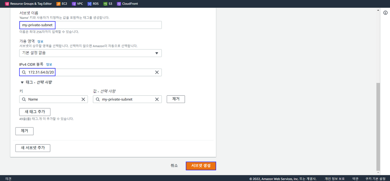- 이전에 생성한 private subnet my-private-subnet 선택