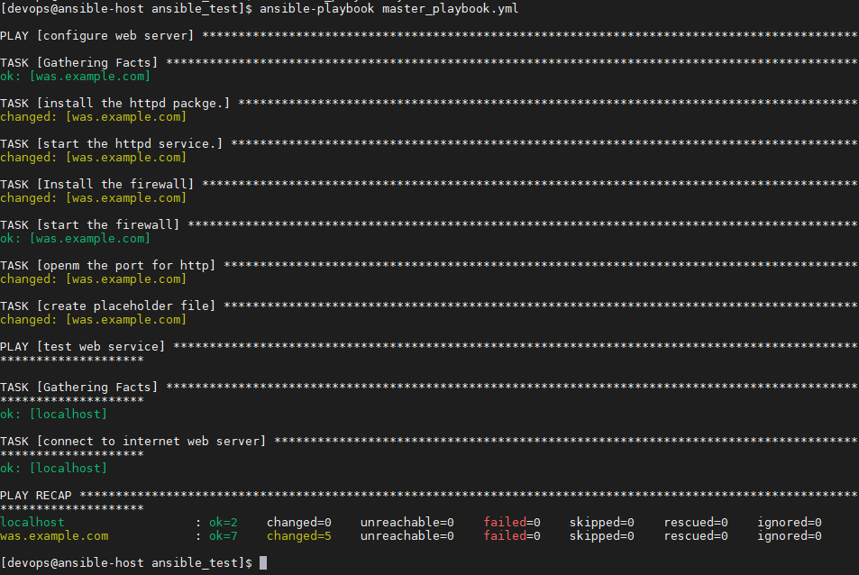 # 모든 작업 수행 후, 제대로 작동하는지 테스트하는 playbook 파일 삽입