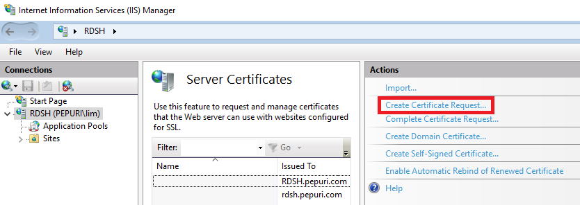 Create Certificate Request...