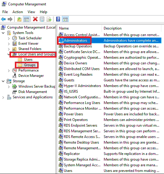 Local Users and Groups - Groups - Administrators - 더블 클릭