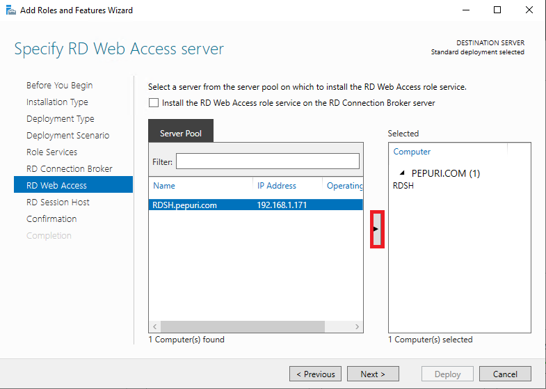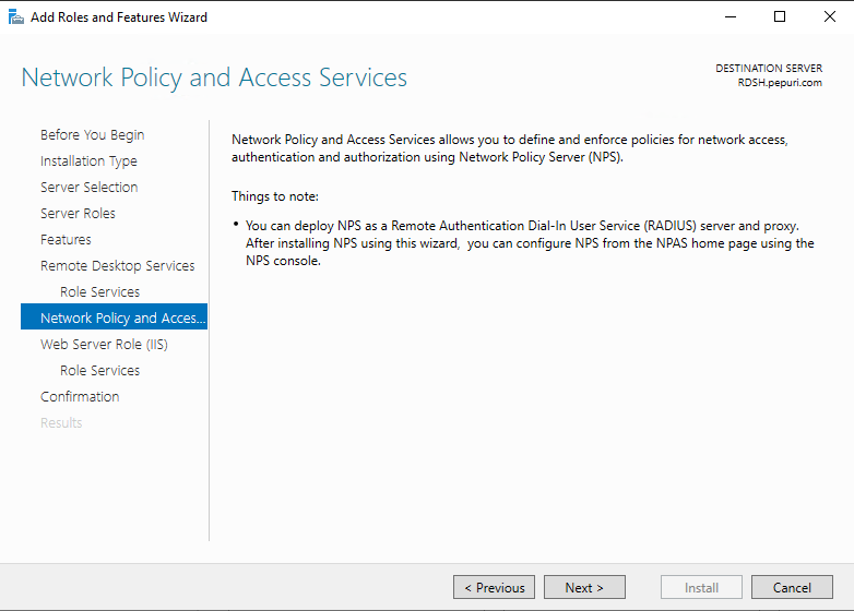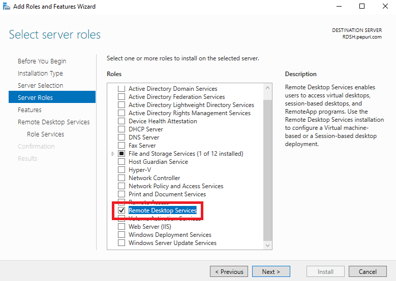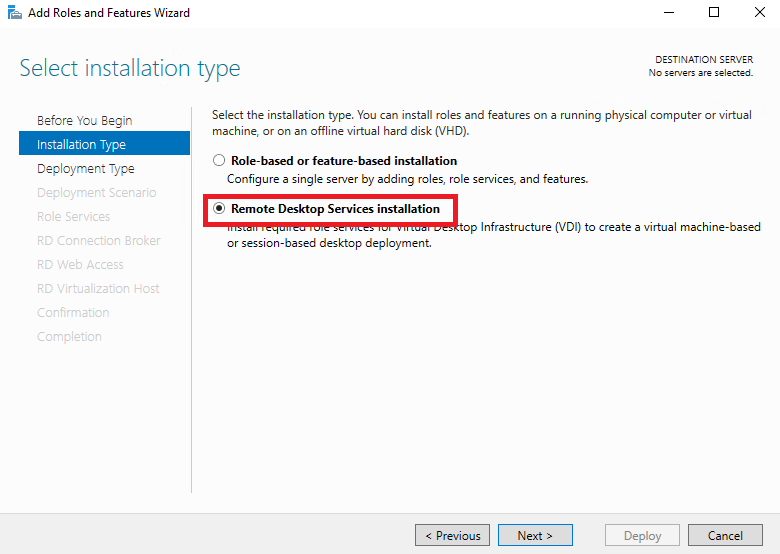Installation Type 에서 Remote Desktop Services installation 을 선택 후 Next