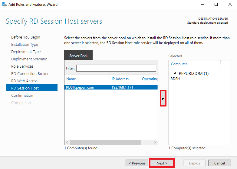 RD Session Host 지정 - Next