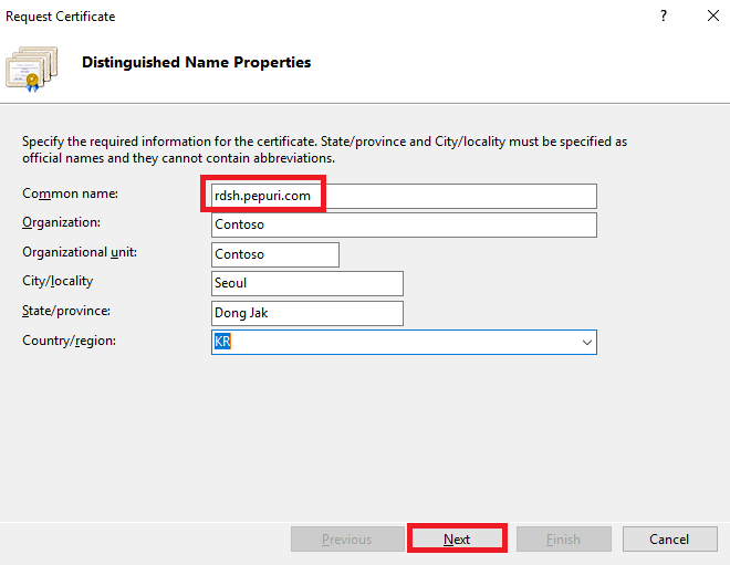 발급받을 SSL 인증서 이름 지정