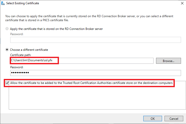 Role 을 선택 Select existing certificate