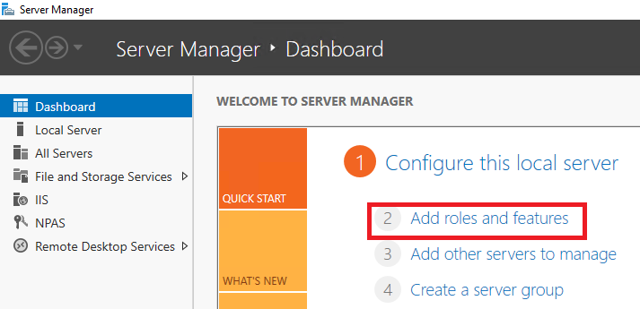 Dashboard 에서 Add roles and features