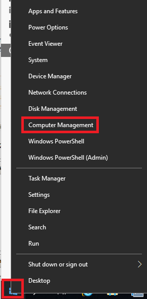 시작 - 우클릭 - Computer management