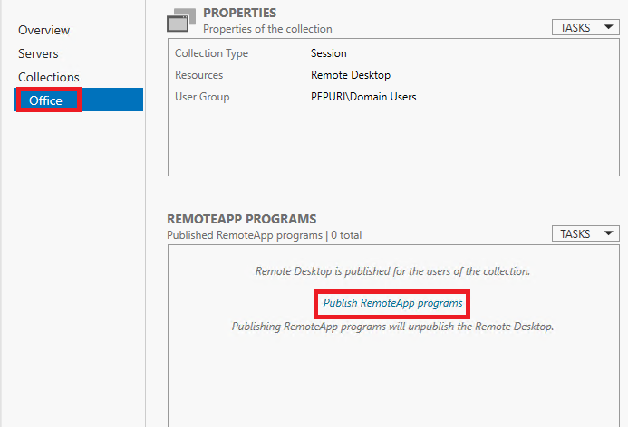 생성된 Collection 에서 Publish RemoteApp programs