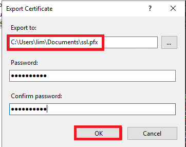 내보낸 인증서 파일 지정 후 OK