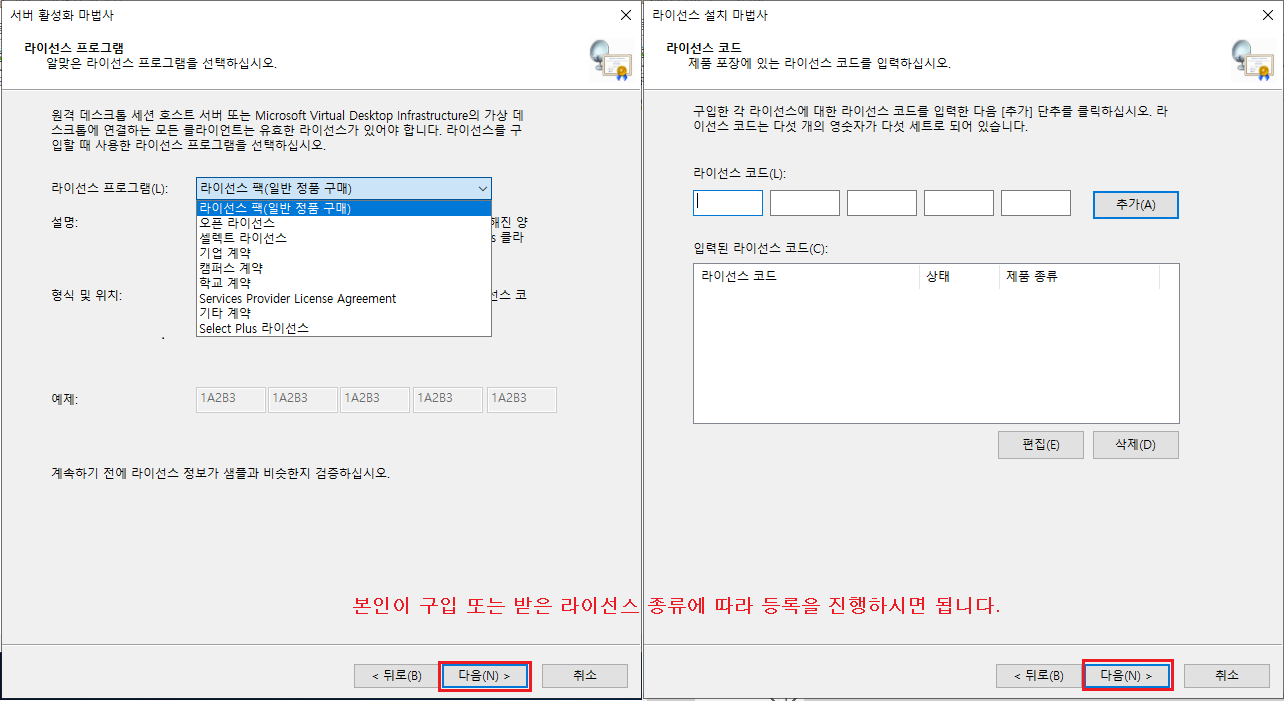 구입한 라이선스에 맞게 확인 후 적용하시면 됩니다.