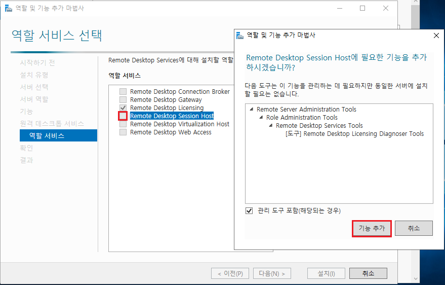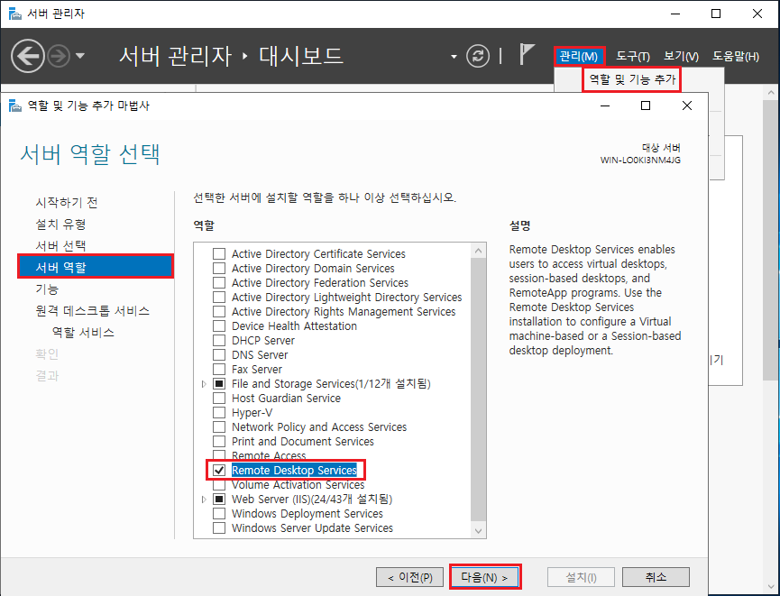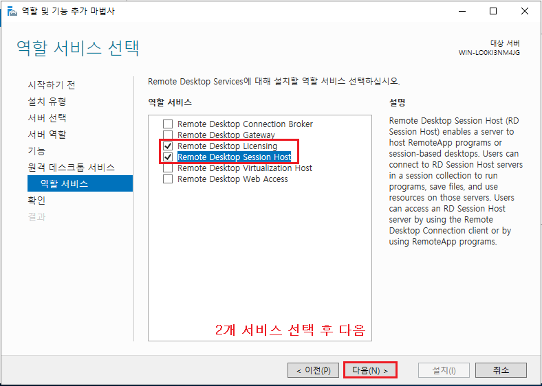 STEP04 → 원격 데스크톱 서비스(Remote Desktop Services) 설치(순서대로)