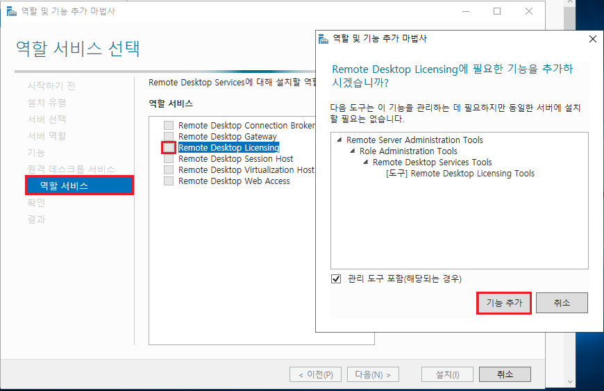 ※ 만약 CAL(클라이언트 액세스 라이선스)가 있다면 등록을 위해 서버 역할에서 기능을 추가해야 합니다.
