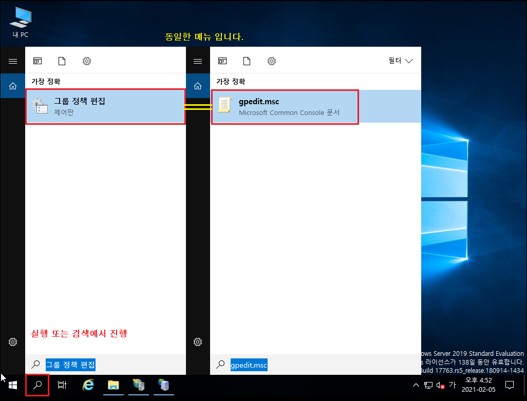 실행 또는 검색 부분에서 그룹 정책 편집 또는 gpedit.msc 입력 후 접근하시면 됩니다.