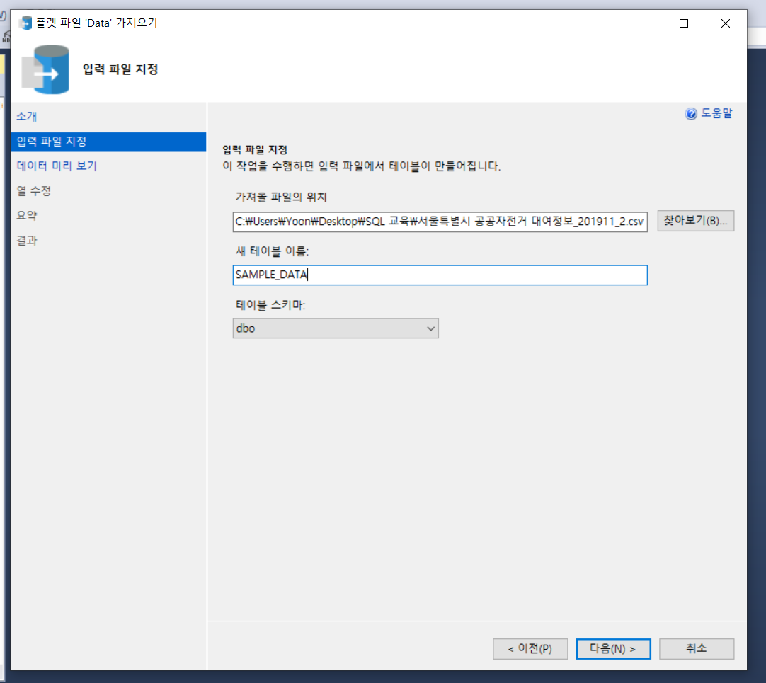 11. 해당 파일을 선택하고 영문명으로 데이터명을 작성합니다.