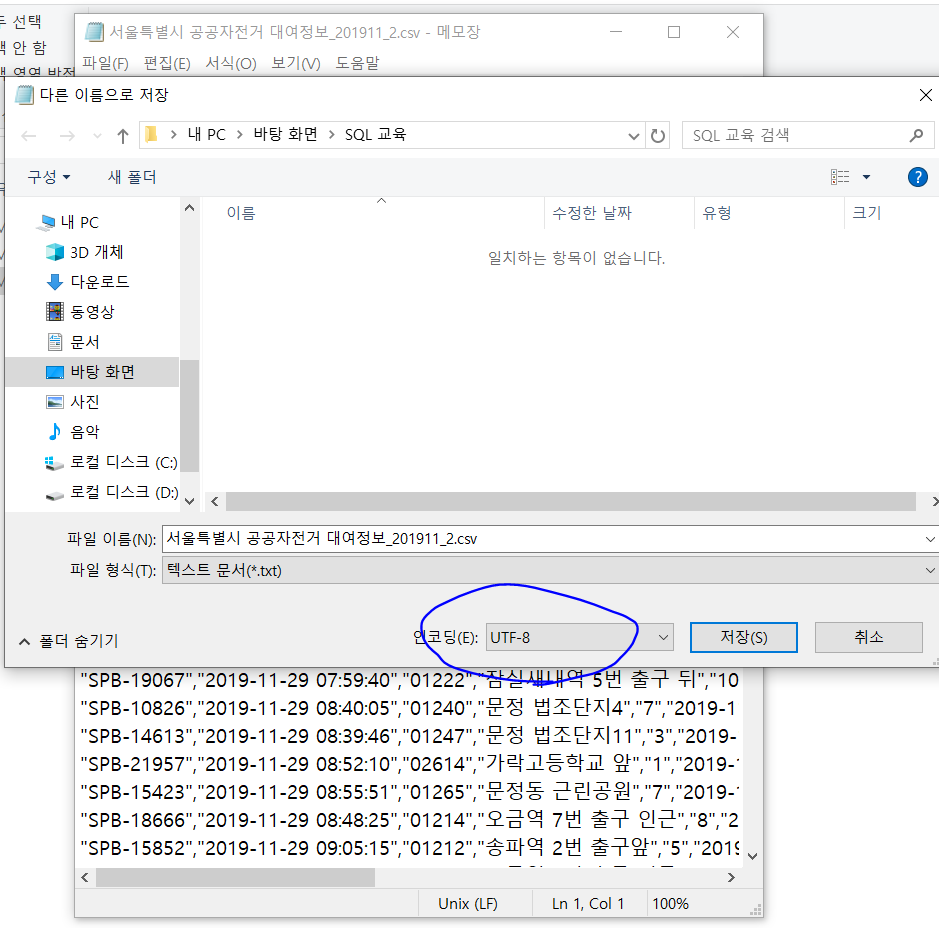 12. 한글이 깨지는군요..! 메모장을 열어 인코딩을 UTF-8로 바꿔주겠습니다.