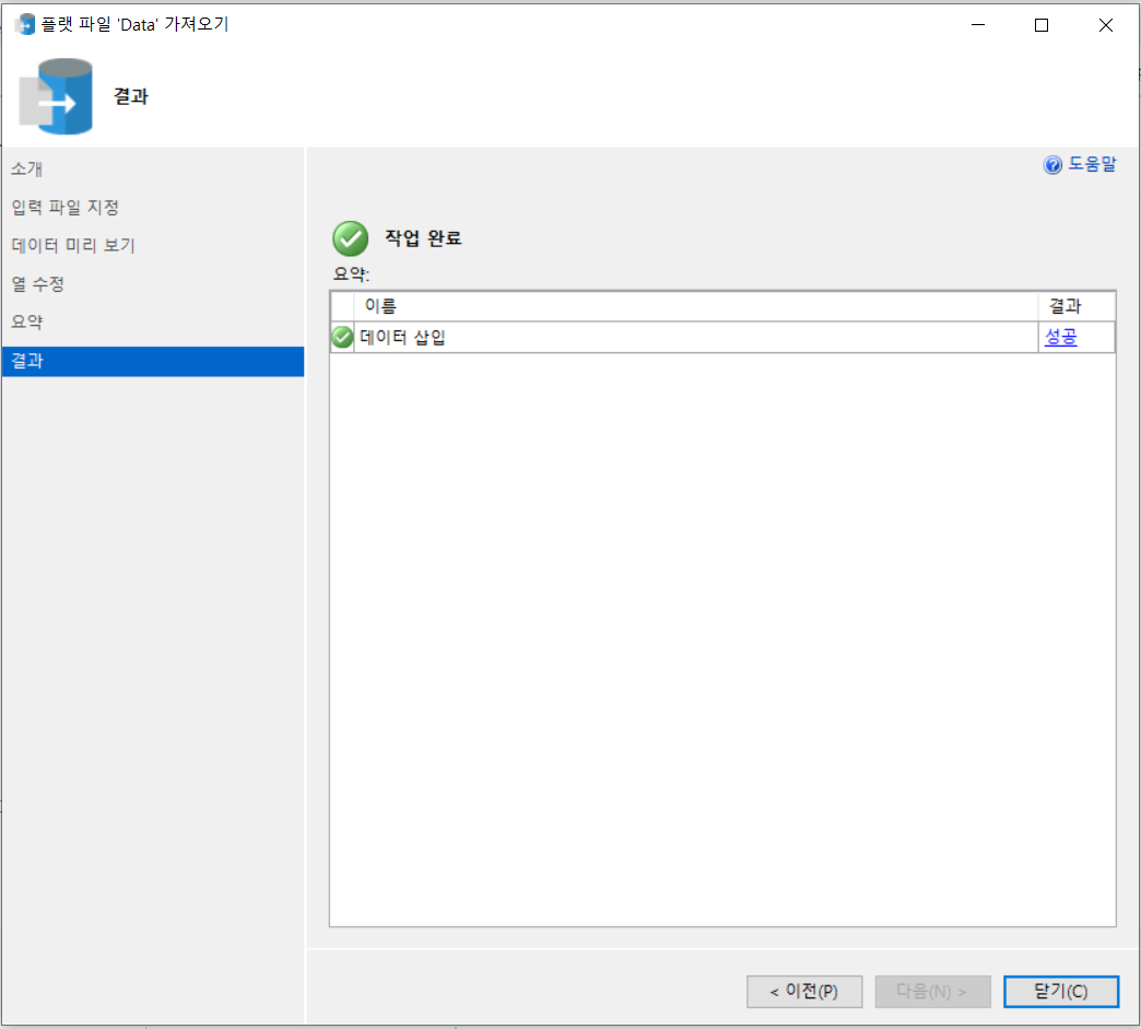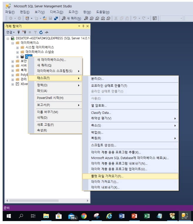 10. 데이터베이스 - 태스크 - 플랫파일을 실행합니다.
