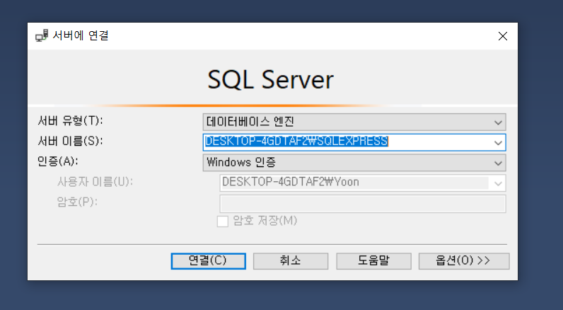 1. 무료 테스트 버전인 MSSQL EXPRESS 버전을 설치합니다.