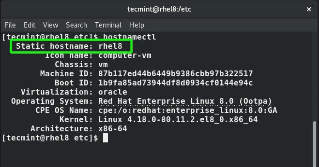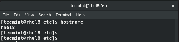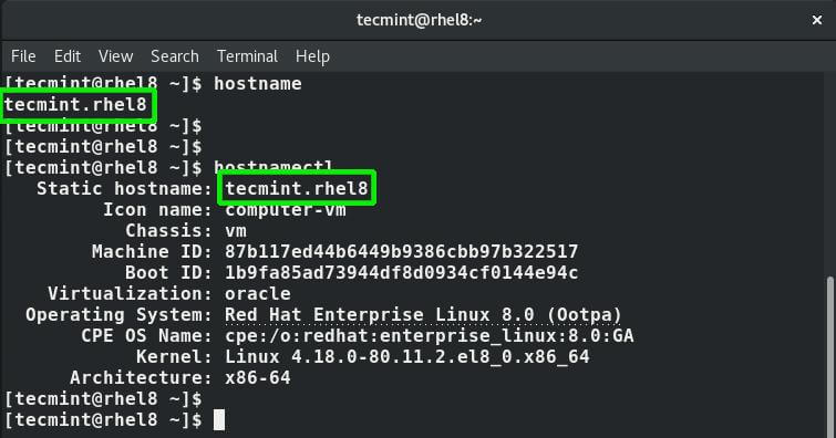 sudo hostnamectl set-hostname tecmint.rhel8
