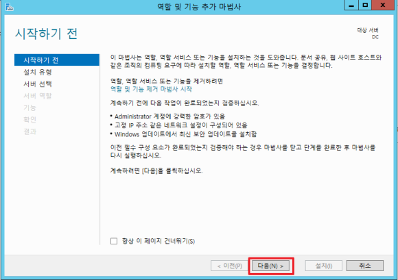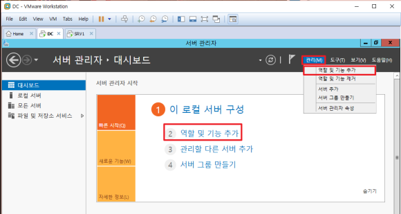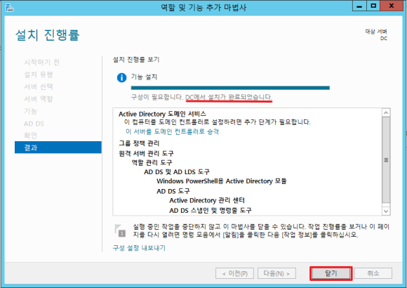 DC로 설정해놓은 서버 컴퓨터에 domain controllor 기능을 부여하려 한다.