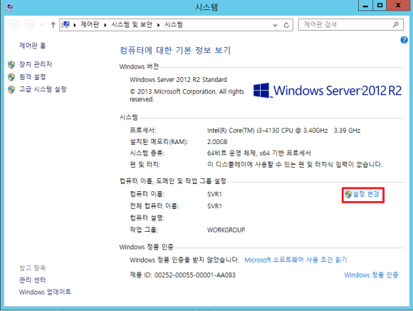 > windows server 2012 R2 버전이 맞는지 체크하고,