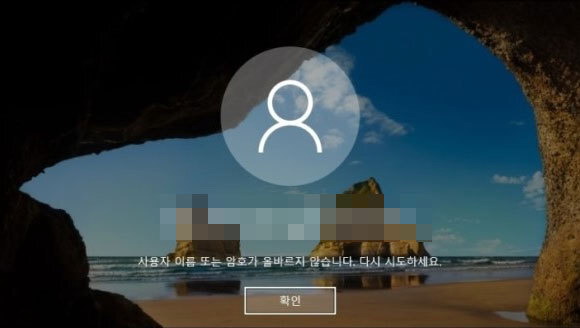 부팅을 할 때... 사용자 이름 또는 암호가 올바르지 않습니다. 다시 시도하세요. 라는 문구가 뜨네요.
