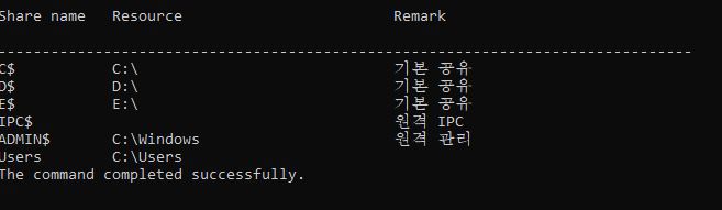cmd 창에서 net share 명령어를 입력하고 PIC$ , ADMIN$를 확인한다.