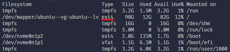 우분투의 경우 경로가 /dev/ubuntu-vg/root 이 default이나 혹시 모르니 확인