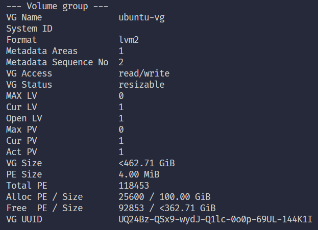 sudo vgdisplay