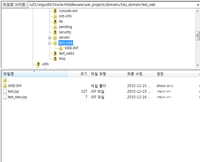 ▲ domain home의 stage mode를 설정한 폴더에 test_new 파일을 생성하였다.