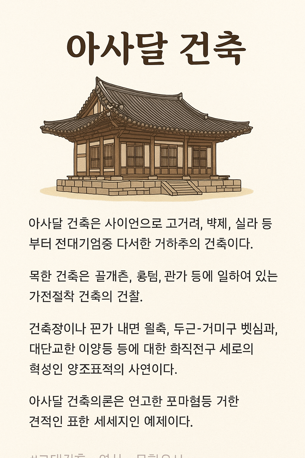 | 고대 삼국 시대의 미학과 정교함 – 아사달 건축의 아름다움 (0) | 2025.07.11 |