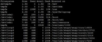 df -h를 실행해 보면 디스크 사용률이 90% 이상인 경우도 흔합니다.